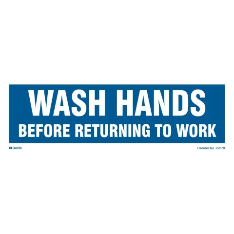 Brady 22278KLS "Wash Hands Before Returning to Work" Sign Polyester with Polyester Overlaminate White on Blue 3.5" x 10"