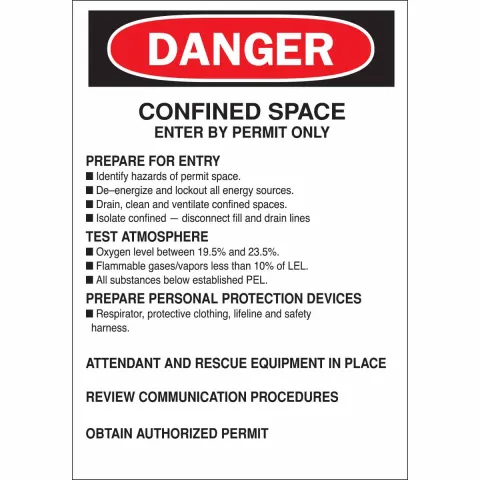 Brady 22426 14 in H x 10 in W Black, Red on White Polystyrene Sign "Danger Confined Space"
