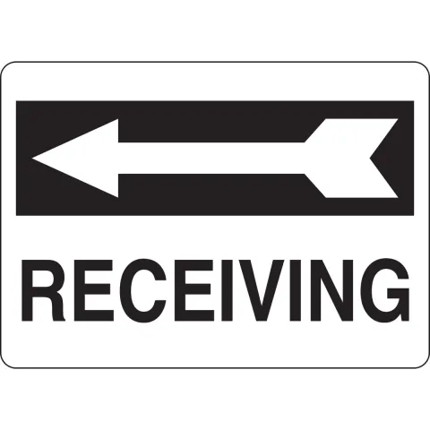 Brady 22470 10 in H x 14 in W White on Black Polystyrene Sign "Receiving" Left Arrow