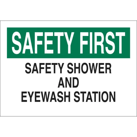Brady 22655 10 in H x 14 in W Black, Green on White Polystyrene Sign "Safety First Safety Shower and Eyewash Station"