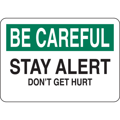 Brady 25300 "BE CAREFUL Stay Alert Don't Get Hurt" Sign 10" x 14" Polystyrene Black Green on White