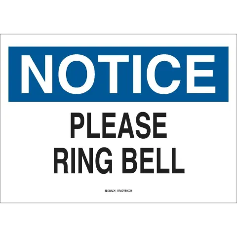 Brady 25832 "Notice Please Ring Bell" Sign 10" x 14" Polystyrene Black Blue on White