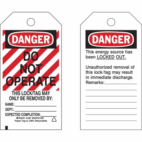 Brady 31897 "Danger Do Not Operate / Unauthorized..." Lockout Tags Paper Black Red on White 5.75" x 3"