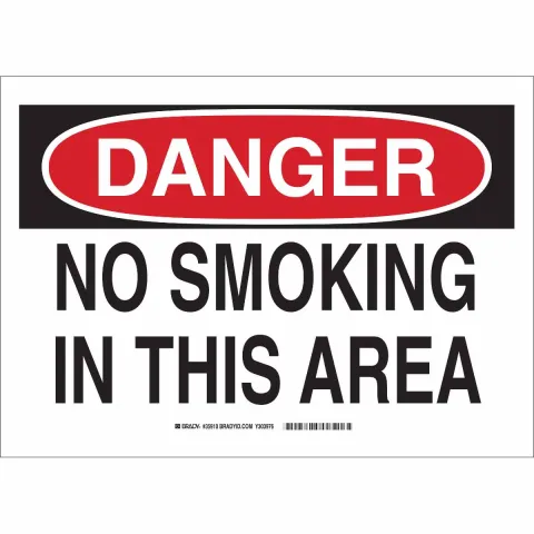 Brady 35910 "Danger No Smoking in This Area" Sign Polyester with Polyester Overlaminate Black Red on White 10" x 14"