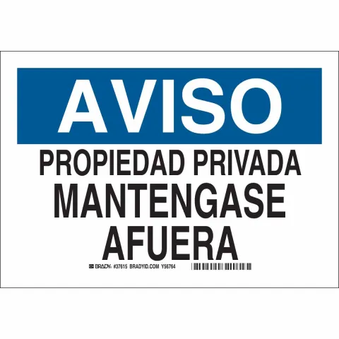 Brady 37615 "Aviso Propiedad Privada Mantengase Afuera" Sign Polyester with Polyester Overlaminate Black Blue on White 7" x 10"