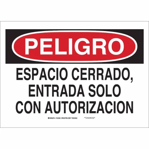 Brady 37849 10 in H x 14 in W Black, Red on White Aluminum Sign "Peligro Espacio Cerrado, Entrada Solo Con Autorizacion"