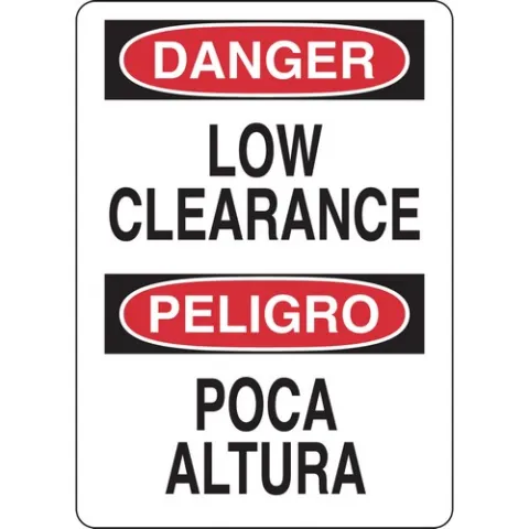Brady 38867 Sign Bilingual Danger Low Clearance B-401 Polystyrene 14"x10" ANSI Black Red on White