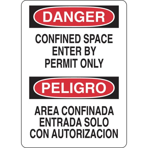 Brady 39087 14 in H x 10 in W Black, Red on White Polystyrene Sign Bilingual "Danger Confined Space Enter by Permit Only"