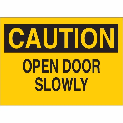 Brady 41079 7 in H x 10 in W Black on Yellow Aluminum Sign "Caution Open Door Slowly"