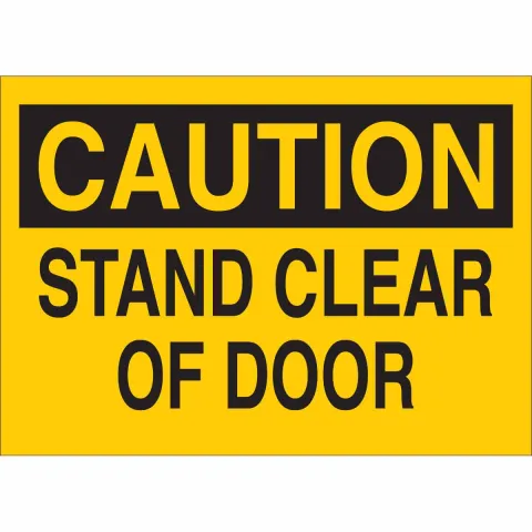 Brady 41084 10 in H x 14 in W Black on Yellow Aluminum Sign "Caution Stand Clear of Door"
