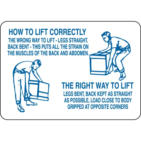 Brady 41244 7 in H x 10 in W Blue on White Aluminum Sign "How To Lift Correctly The Wrong Way To Lift The Right Way To Lift..."