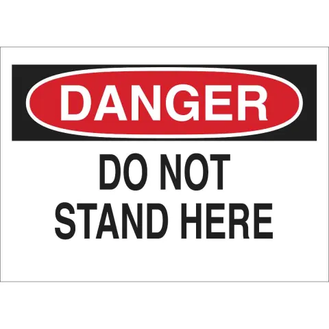 Brady 42481 "Danger Do Not Stand Here" Sign Aluminum Black Red on White 10" x 14"