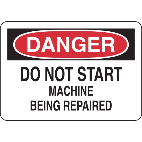 Brady 42485 "Danger Do Not Start Machine Being Repaired" Sign Aluminum Black Red on White 10" x 14"