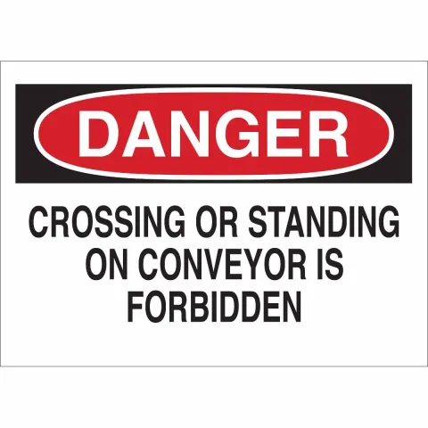 Brady 43192 "Danger Crossing or Standing on Conveyor Is Forbidden" Sign Aluminum Black Red on White 10" x 14"