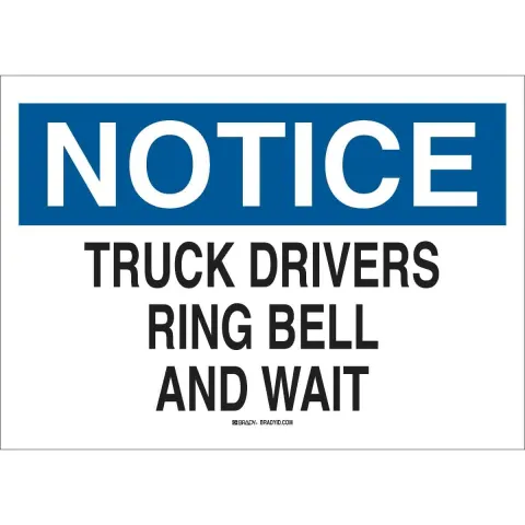 Brady 43412 Sign "Notice Truck Drivers Ring Bell and Wait" B-555 Aluminum 10"x14" Blue Black on White