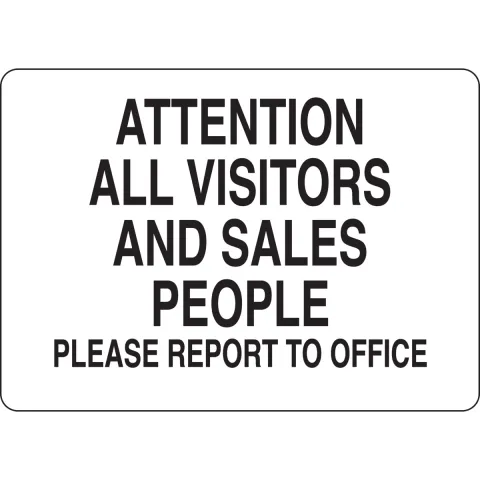 Brady 43422 Sign "Attention All Visitors and Sales People Please Report to Office" 10"x14" Black on White