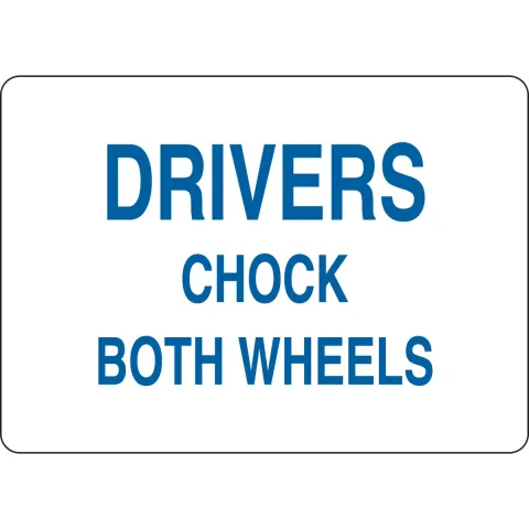 Brady 43426 Sign "Drivers Chock Both Wheels" B-555 Aluminum 10"x14" Blue on White