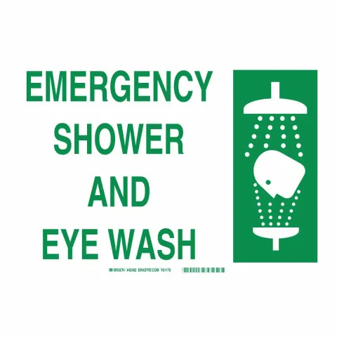 Brady 43482 "Emergency Shower & Eye Wash Emergency Shower and Eye Wash" Sign Aluminum Green on White 10" x 14"