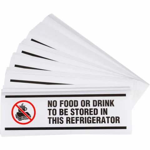 Brady, 45233, "No Food or Drink To Be Stored in This Refrigerator" Labels Vinyl Black Red on White 3.5" x 10"