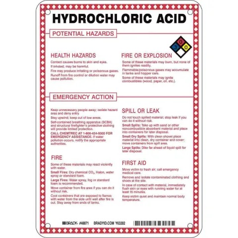 Brady 48871 Hazardous Material "Hydrochloric Acid" Sign, 10" x 7"
