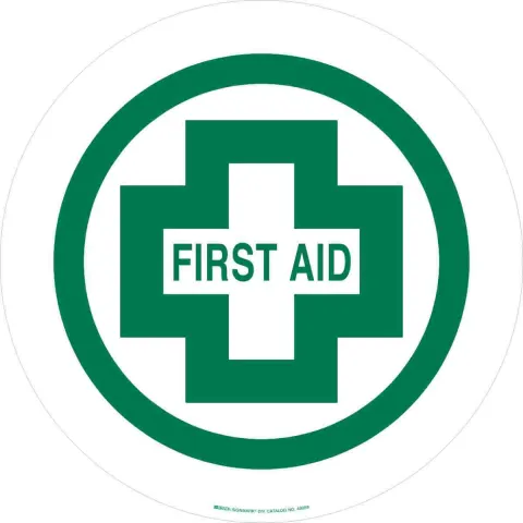 Brady 49063 "First Aid" Anti-Slip Floor Sign Vinyl Green on White 17" Diameter