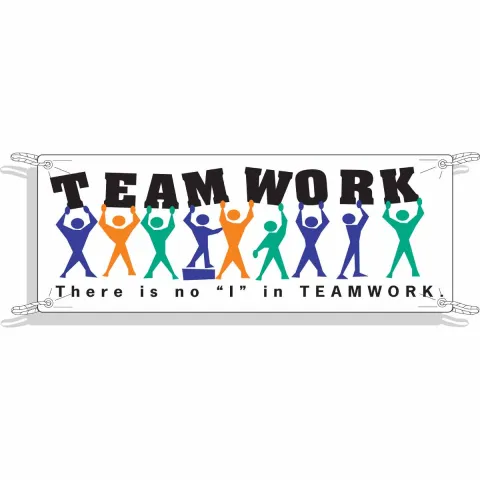 Brady 50900 "Teamwork There Is No "I" in Teamwork" Sign Polyethylene Black Blue Green Orange on White 4" x 10"