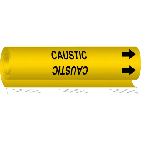 Brady 5643-OO High Performance Pipe Marker "Caustic" B-689 Coiled Plastic 0.375"-0.5" Wrap Around Black on Yellow