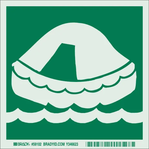 Brady 59102 BradyGlo Life Raft Sign Photoluminescent Polyester Green on Glow 6" x 6"