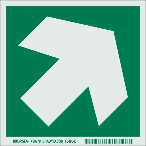 Brady 59279 BradyGlo Diagonal Arrow Sign Photoluminescent Polyester Green on Glow 6" x 6"