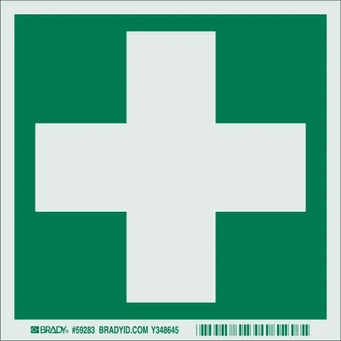 Brady 59283 BradyGlo First Aid Symbol Sign Photoluminescent Polyester Green on Glow 6" x 6"