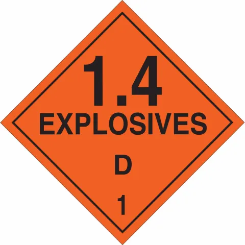 Brady 63363 "1.4 Explosives D 1" Sign, 10.75" x 10.75", Fiberglass