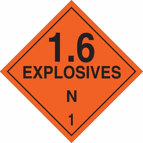 Brady 63404 "1.6 Explosives N 1" Sign, 10.75" x 10.75", Polycoated Tag