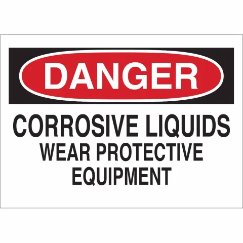 Brady 70260 "DANGER Corrosive Liquids Wear Protective Equipment" Sign, Fiberglass, 10" x 14"