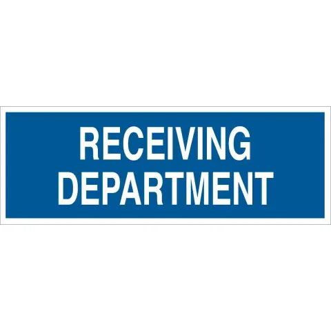 Brady 70503 10 in H x 28 in W Blue on White Fiberglass "Receiving Department" Sign