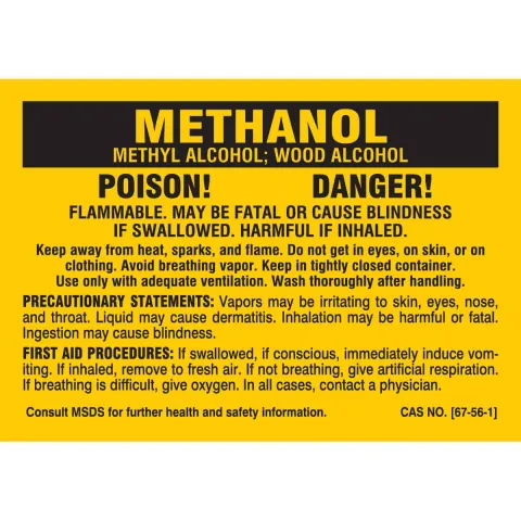 Brady 7282PLS 2 in H x 2.875 in W Black on Yellow Polyester with Polyester Overlaminate Labels, "Methanol Poison Danger", Pack of 25 pcs