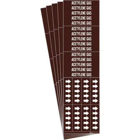 Self-sticking pipe markers from Brady® simplify installation with their factory-applied industrial-grade adhesives: simply peel off the backing and press the marker in place.