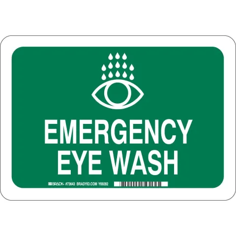 Brady 73643 "Emergency Eye Wash" Sign Fiberglass White on Green 7" x 10"