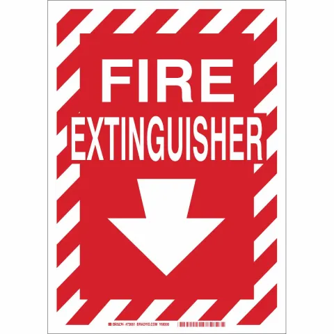 Brady 73661 BradyGlo Sign "Fire Extinguisher" with Arrow Down B-324 Photoluminescent Polyester 14"x10" Red on Glow