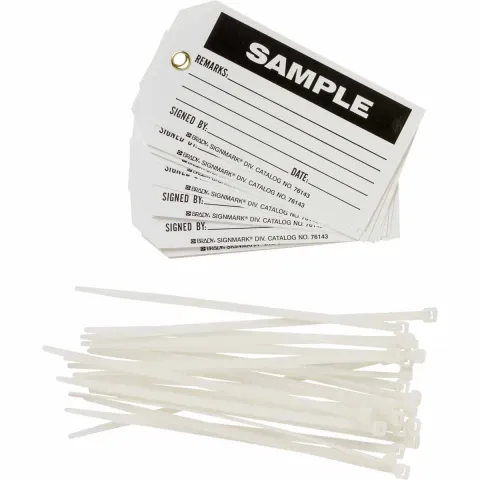 • B-851 Rigid Economy Polyester with brass grommets, exceeds OSHA's 50 lb pull force requirement for Tagout devices
