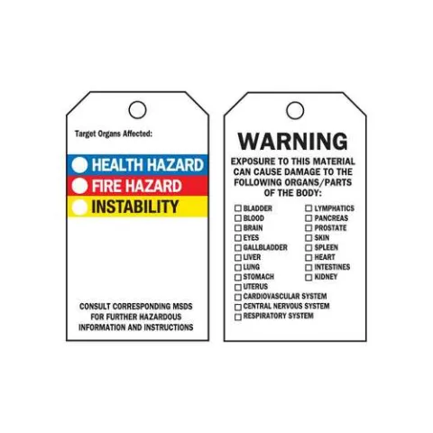 Brady 76229 Target Organs Affected Tag, Polyester, Self-Laminating, "WARNING" Header, 5.75 in H x 3 in W, Pack of 25 Tags