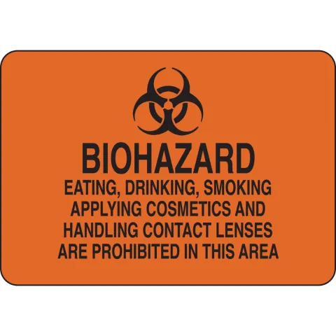 Brady 83773 "Biohazard Eating, Drinking, Smoking, Applying Cosmetics Handling Contact Lenses Prohibited" Sign, 7 x 10"