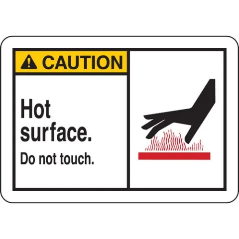 Brady 83916 3.5 in H x 5 in W Black, Red, Yellow on White Polyester with Polyester Overlaminate Sign, "Caution Hot Surface, Do Not Touch,"
