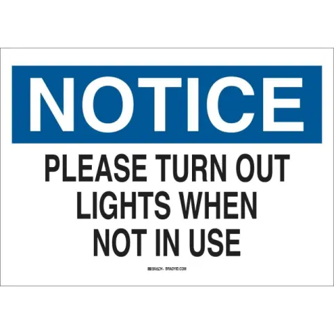 Brady 84583 "Notice Please Turn Out Lights When Not in Use" Sign Polyester with Polyester Overlaminate Green on White 7" x 10"