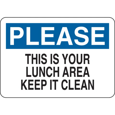 Brady 85670 "Please This Is Your Lunch Area Keep It Clean" Sign Polyester with Polyester Overlaminate Black Blue on White 7" x 10"