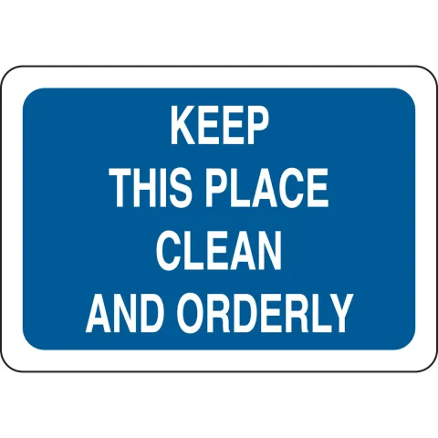 Brady 85720 "Keep This Place Clean and Orderly" Sign Polyester with Polyester Overlaminate White on Blue 7" x 10"