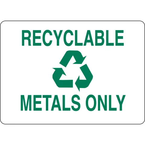 Brady 86018 "Recyclable Metals Only" Sign Polyester with Polyester Overlaminate Green on White 10" x 14"