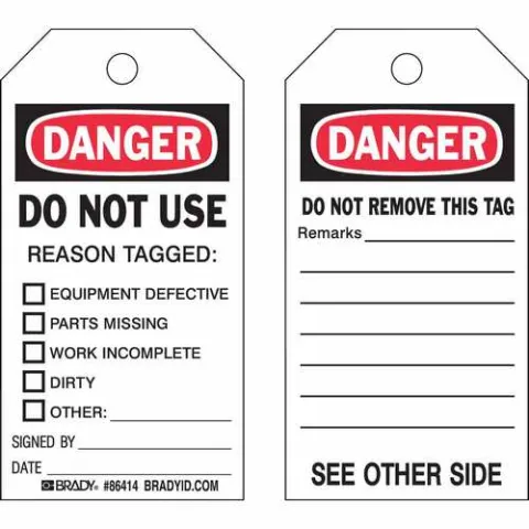 Brady 86414 Tag Accident Prevention Danger Do Not Use Reason Tagged B-837 Heavy Duty Polyester 5.75"x3" Black Red on White 2-Sided 10-Pack
