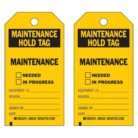 B837 5.75X3 BLK/YEL MAINT.HOLD TAG 10/PK