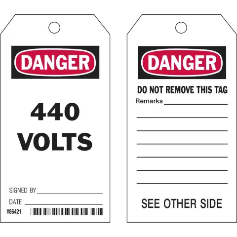 Brady 86421 "440 VOLTS" Accident Prevention Tag, 5.75 x 3", Black, Red on White (Heavy Duty Polyester)