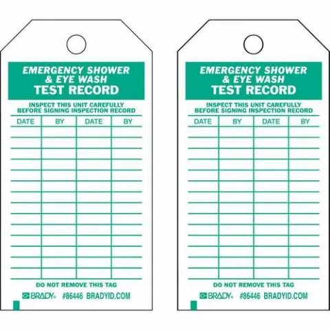 Brady 86446 Tag Emergency Shower and Eye Wash Inspection B-837 Heavy Duty Polyester 5.75"x3" Green on White 2-Sided 10-Pack
